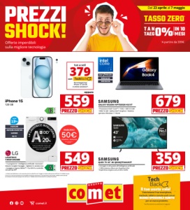 3 TASSO ZERO TAN IN 10 TAEG MESI 0% BUONO 5€* BUONO 5€* GALAXY A17 SMARTPHONE • Sistema operativo Android 15 • Processore Octa Core S5E8535 Exynos 1330 • Dual SIM • Versione operatore S-AMOLED 6,7” 50 MPX FOTO 8 + 256 GB 299 QUANTITÀ LIMITATE 150 PEZZI SAMSUNG GALAXY A56 5G SMARTPHONE • Batteria 5.000mAh con Ricarica Ultra-Rapida 45 W • Processore Octa Core Exynos 1580 • Lettore impronte digitali S-AMOLED 6,7” 67 MPX FOTO 8 + 128 GB 5G GALAXY A57 5G SMARTPHONE • Batteria a lunga durata in un design ultrasottile • Tripla fotocamera e selfie perfetti, con AI • Visione super definita con display Super AMOLED+ • 6 anni di aggiornamenti della sicurezza S-AMOLED+ 6,7” 50 MPX FOTO 8 + 128 GB 5G S-AMOLED 6,7” 50 MPX FOTO 6 + 128 GB 5G GALAXY A37 5G SMARTPHONE • Design iconico e resistente • Tripla fotocamera, scatti brillanti anche al buio • Batteria a lunga durata con una sola ricarica • 6 anni di aggiornamenti della sicurezza 999 PREZZO SHOCK 799 PREZZO SHOCK 179 PREZZO SHOCK GALAXY S26 SMARTPHONE • Foto e video nitidi, in ogni momento e distanza • Galaxy AI: scatta, scrivi, la foto si trasforma • Il migliore display potenziato da AI D-AMOLED2X 6,3” 50 MPX FOTO 12 + 512 GB 5G D-AMOLED 6,7” 200 MPX FOTO 12 + 512 GB 5G GALAXY S25 EDGE SMARTPHONE • Il design più sottile di sempre, in titanio • Processore potente, pensato per Galaxy AI • Gestisci tutto facilmente con Galaxy AI ACCESSORI 69,95 QUANTITÀ LIMITATE 200 PEZZI 19,95 QUANTITÀ LIMITATE 200 PEZZI CARICABATTERIE PORTATILE 10000MAH USB/USB-C POWERBANK WIRELESS 10000MAH • Con tecnologia Mag-Safe CARICABATTERIE RETE 120 W ACHIPHUSBCPD20SMLW COMPATIBILE CON APPLE CARICABATTERIE RETE 25W ACHSMUSBCPD25WSMLW COMPATIBILE CON SAMSUNG CAVO DATI 1,2 M USB-C USBDATACUSBC-CW COMPATIBILE CON APPLE CAVO DATI 1,2 M USB-C USBDATACUSBC-CW COMPATIBILE CON SAMSUNG 24,99 SE LI ACQUISTI INSIEME INVECE DI 37,98€ 24,99 SE LI ACQUISTI INSIEME INVECE DI 37,98€ * Spendibile entro 30 GIORNI in tutti i negozi comet sull’acquisto di tutti gli accessori cellular line * A57 5G_A titolo esemplificativo e non esaustivo prezzo valido fino al 7 maggio e relativo all’acquisto di Samsung Galaxy A57 5G 128GB che può essere tuo a partire da €449 invece di €549 includendo 100€ di supervalutazione Samsung se restituisci il tuo telefono usato funzionante e in condizioni ottimali. ** A37 5G_A titolo esemplificativo e non esaustivo prezzo valido fino al 7 maggio e relativo all’acquisto di Samsung Galaxy A37 5G 128GB che può essere tuo a partire da €349 invece di €449 includendo 100€ di supervalutazione Samsung se restituisci il tuo telefono usato funzionante e in condizioni ottimali. Se consegni il tuo telefono usato e funzionante in ottime condizioni* 449 con TechBack 44,90 TASSO ZERO IN 10 RATE TAN TAEG 0% 549 oppure Se consegni il tuo telefono usato e funzionante in ottime condizioni**. 349 con TechBack 449 oppure